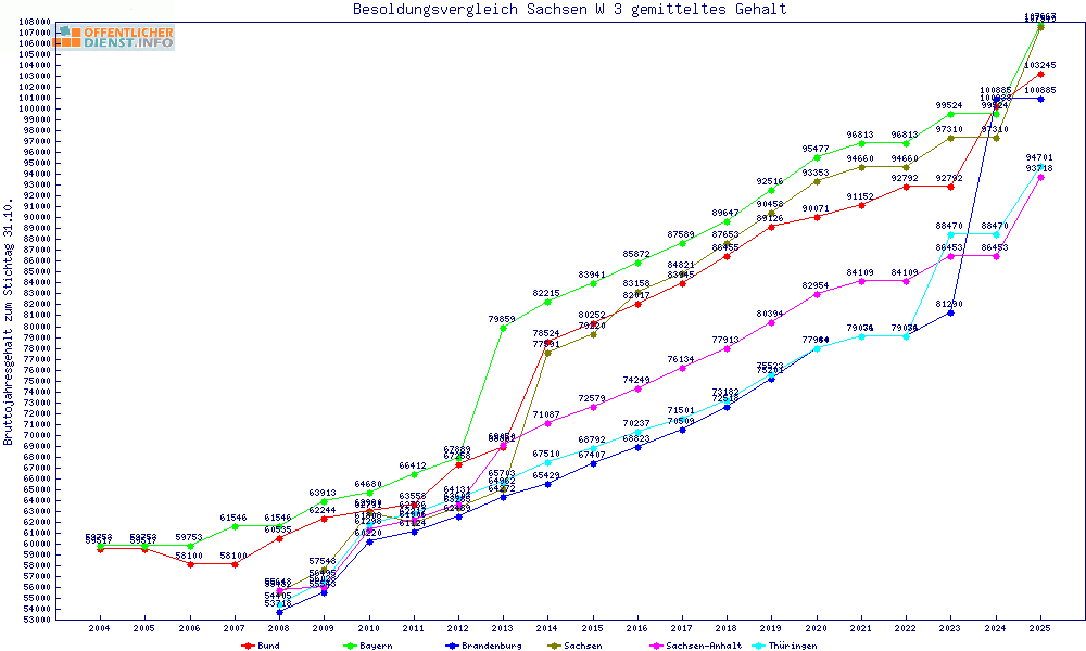 | Besoldungsvergleich W 3 im Jahr 2025 | gemitteltes Gehalt | ||||||