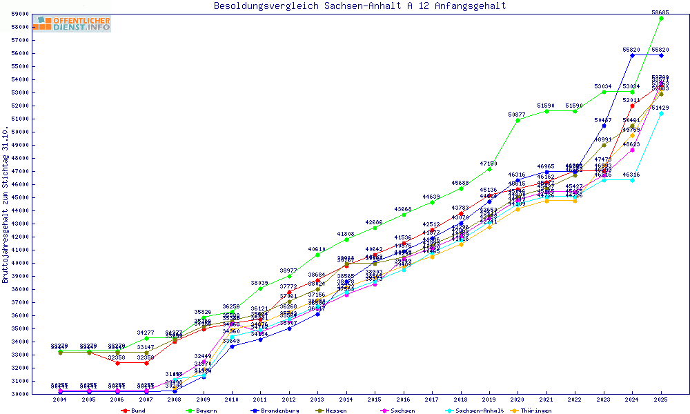 | Besoldungsvergleich A 12 im Jahr 2025 | Anfangsgehalt | ||||||