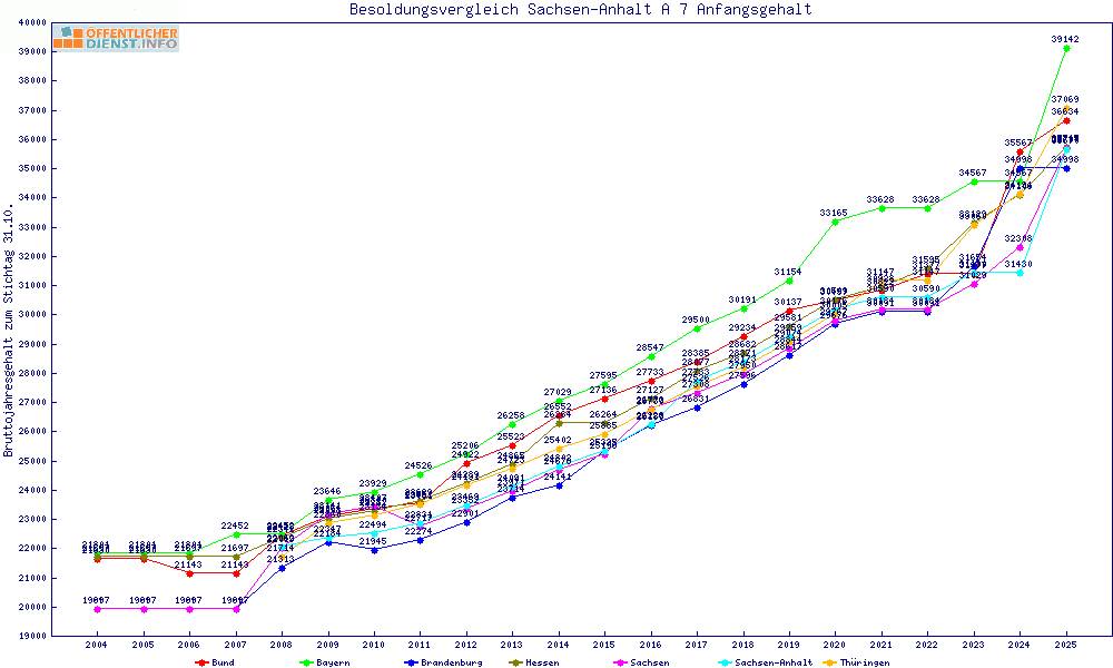 | Besoldungsvergleich A 7 im Jahr 2025 | Anfangsgehalt | ||||||