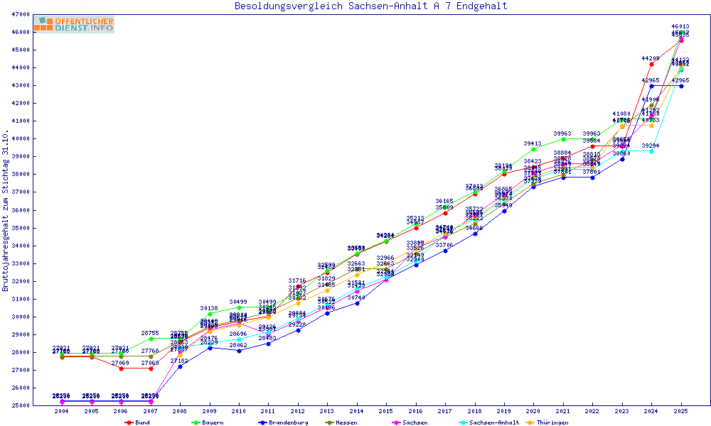 | Besoldungsvergleich A 7 im Jahr 2025 | Endgehalt | |||||||