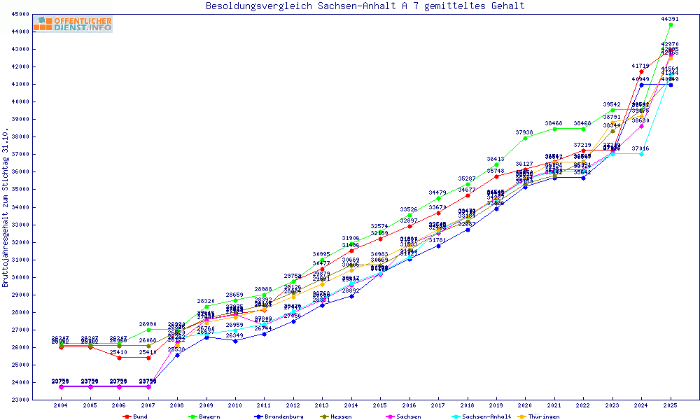 | Besoldungsvergleich A 7 im Jahr 2025 | gemitteltes Gehalt | ||||||