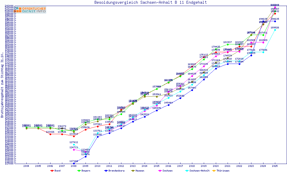 | Besoldungsvergleich B 11 im Jahr 2025 | gemitteltes Gehalt | ||||||