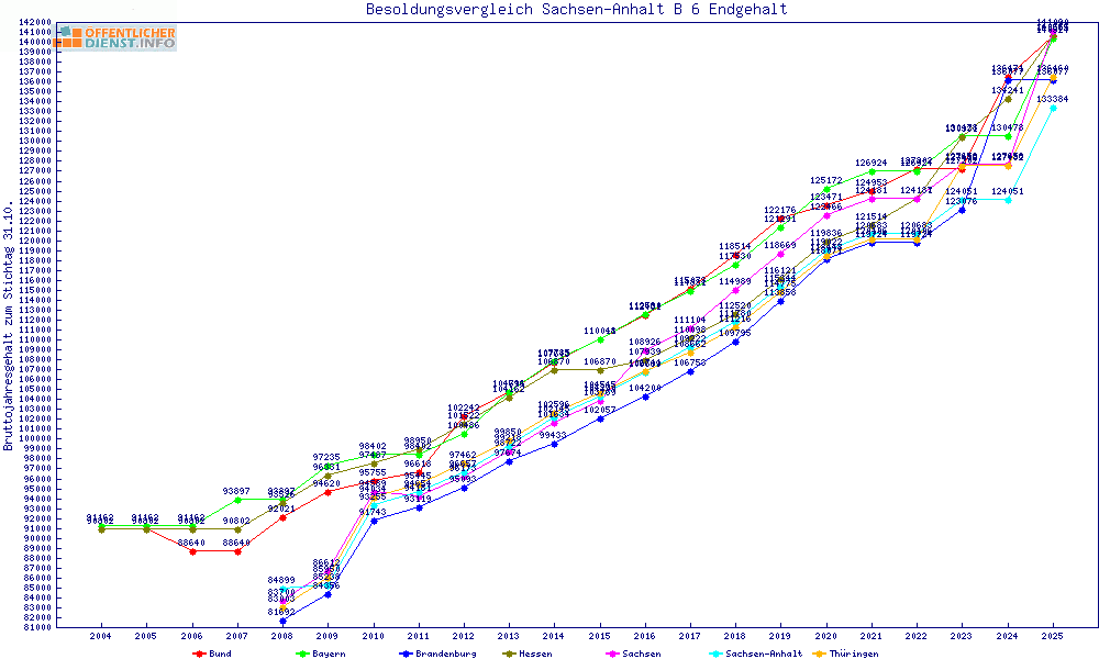 | Besoldungsvergleich B 6 im Jahr 2025 | Anfangsgehalt | ||||||