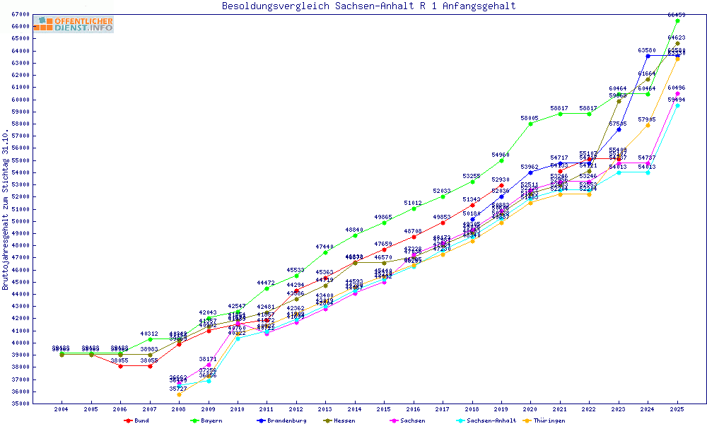 graphischer Besoldungsvergleich gemitteltes Gehalt aller Bundesländer