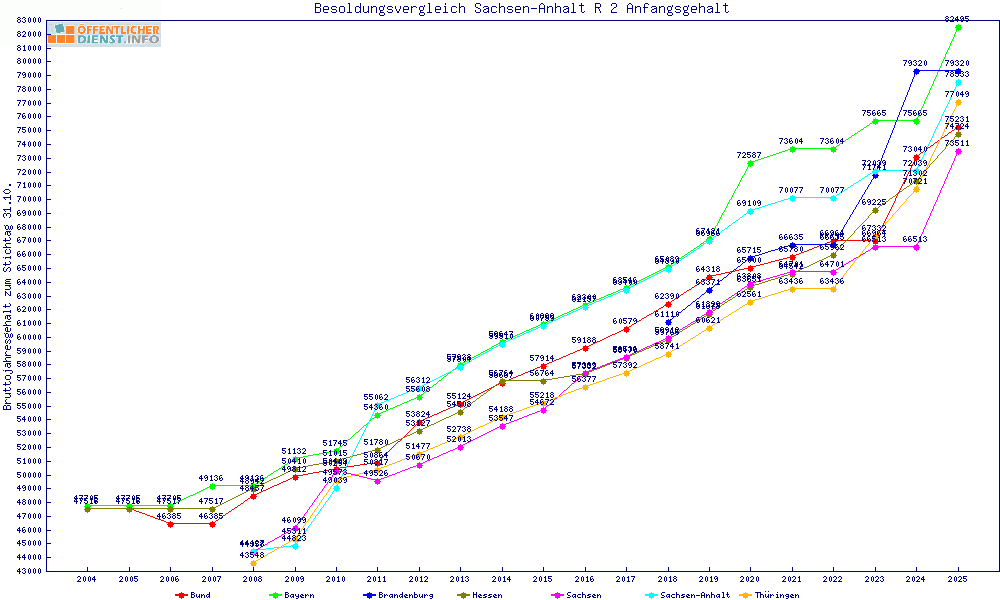 | Besoldungsvergleich R 2 im Jahr 2025 | Anfangsgehalt | ||||||
