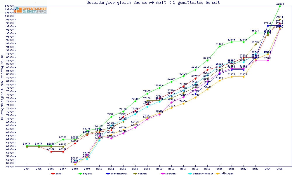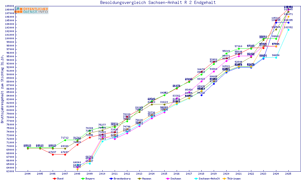 | Besoldungsvergleich R 2 im Jahr 2025 | gemitteltes Gehalt | ||||||