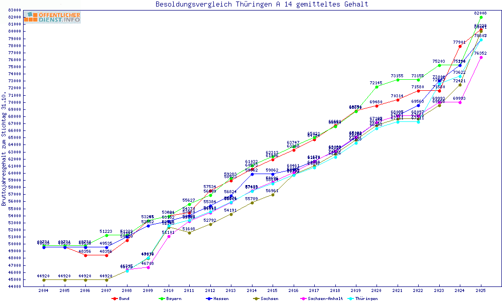 | Besoldungsvergleich A 14 im Jahr 2025 | gemitteltes Gehalt | ||||||