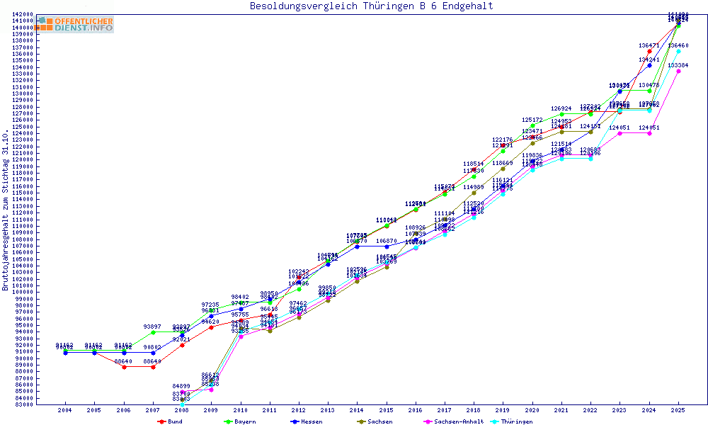 | Besoldungsvergleich B 6 im Jahr 2025 | gemitteltes Gehalt | ||||||