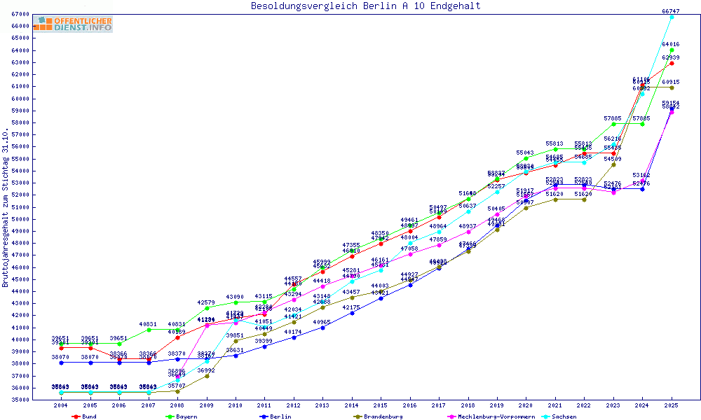 | Besoldungsvergleich A 10 im Jahr 2025 | gemitteltes Gehalt | ||||||