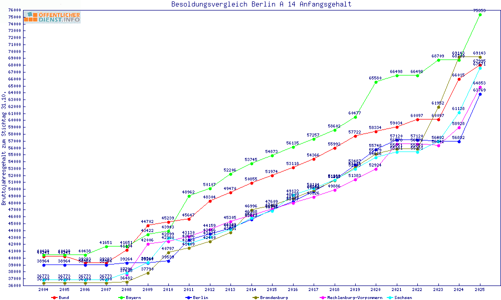 | Besoldungsvergleich A 14 im Jahr 2025 | Anfangsgehalt | ||||||