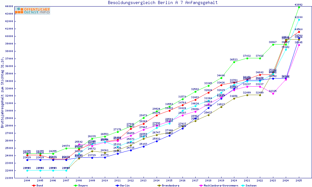 | Besoldungsvergleich A 7 im Jahr 2025 | Anfangsgehalt | ||||||