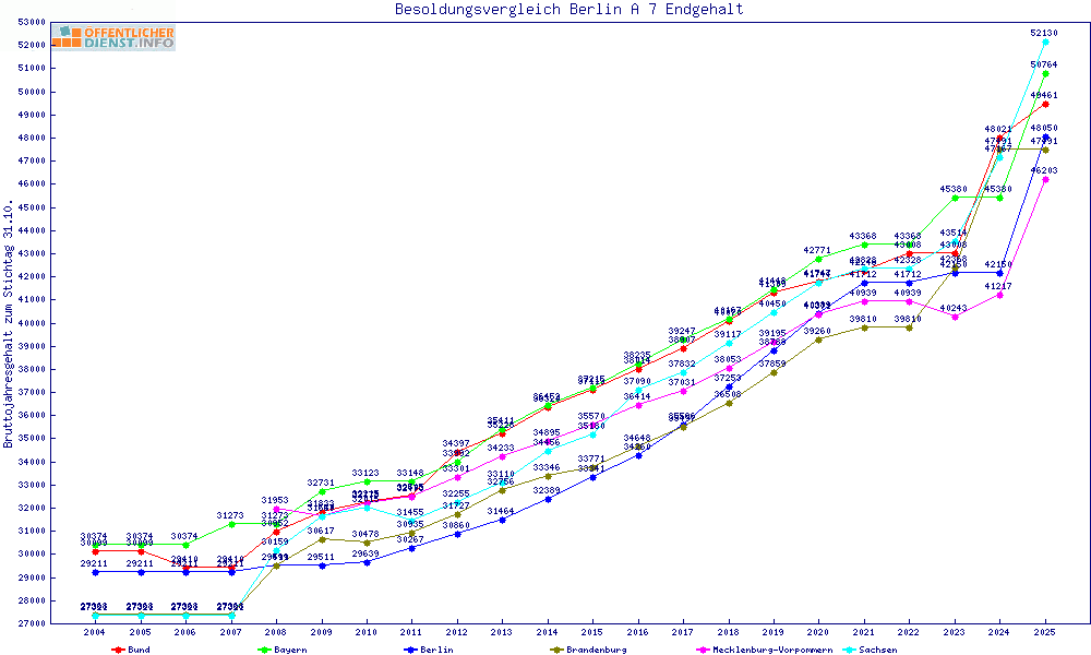 | Besoldungsvergleich A 7 im Jahr 2025 | Endgehalt | |||||||