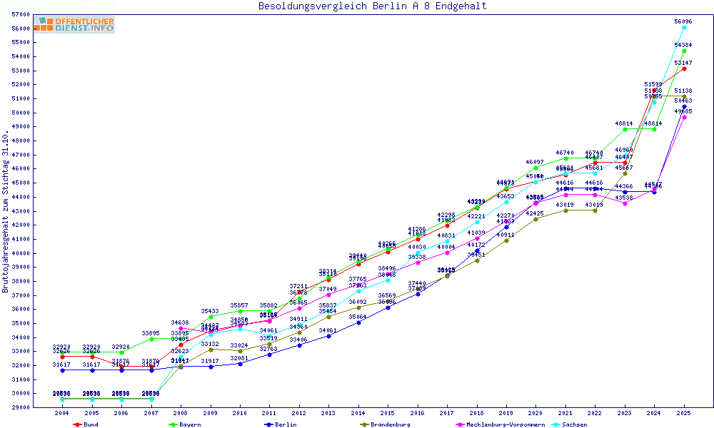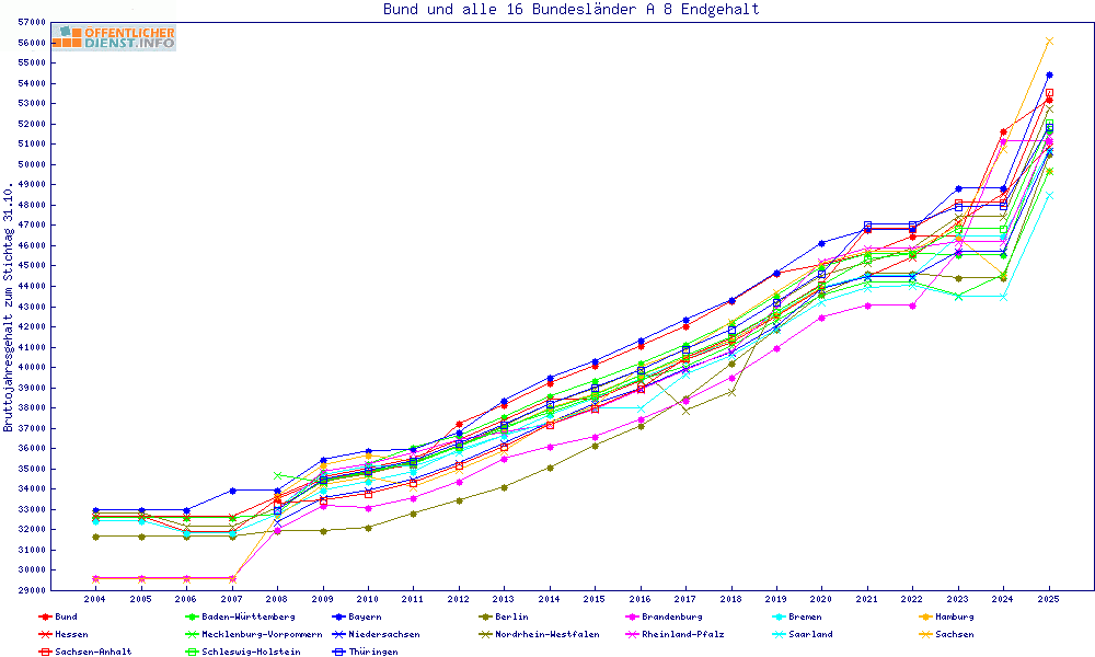 | Besoldungsvergleich A 8 im Jahr 2025 | Endgehalt | |||||||