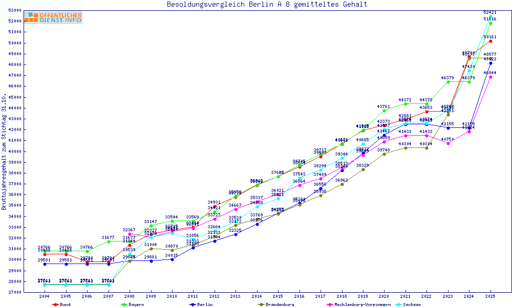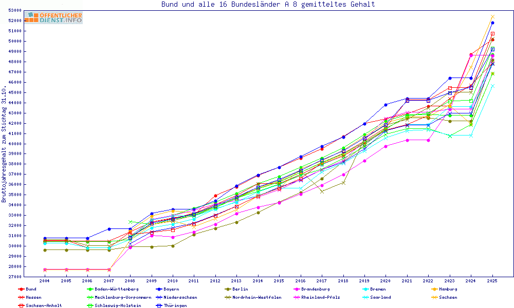 | Besoldungsvergleich A 8 im Jahr 2025 | gemitteltes Gehalt | ||||||