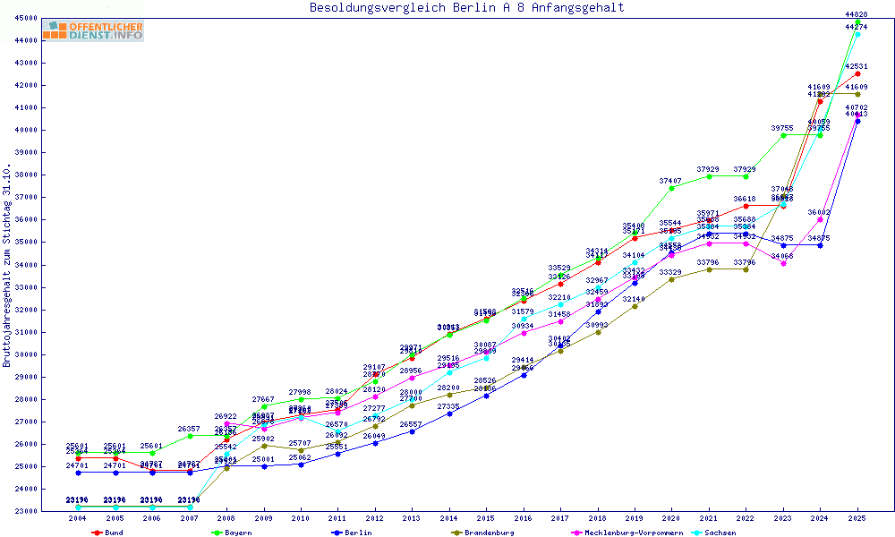 | Besoldungsvergleich A 8 im Jahr 2025 | Anfangsgehalt | ||||||