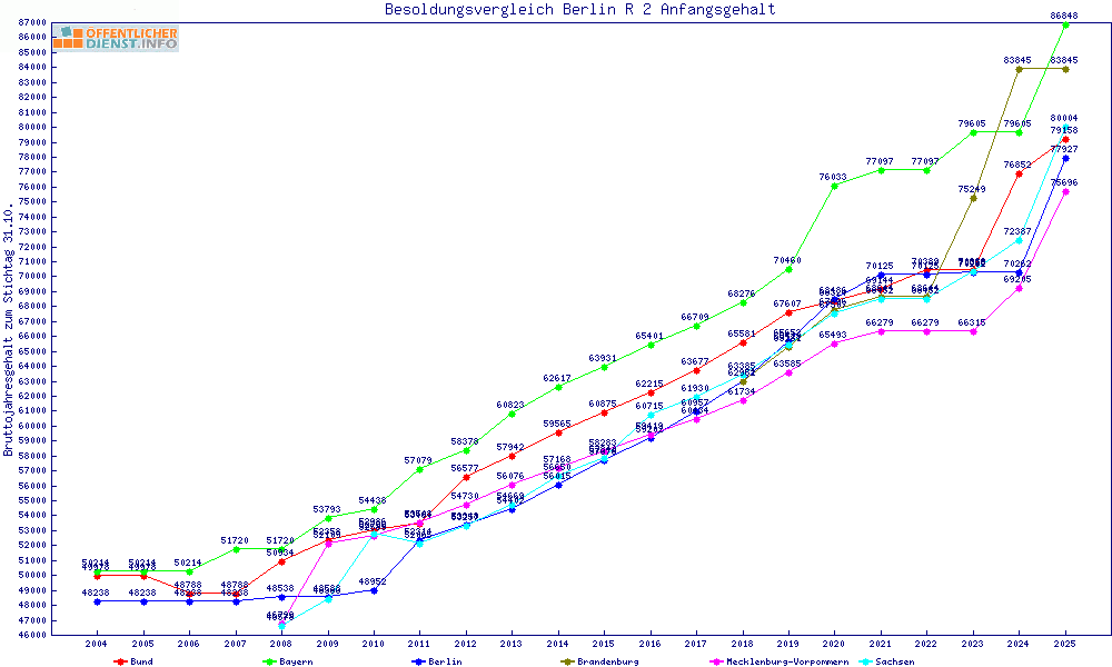 | Besoldungsvergleich R 2 im Jahr 2025 | Anfangsgehalt | ||||||
