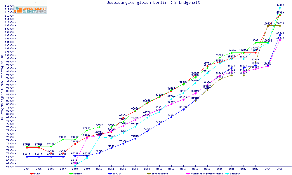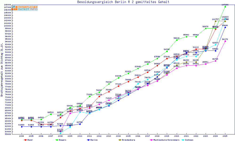 | Besoldungsvergleich R 2 im Jahr 2025 | gemitteltes Gehalt | ||||||
