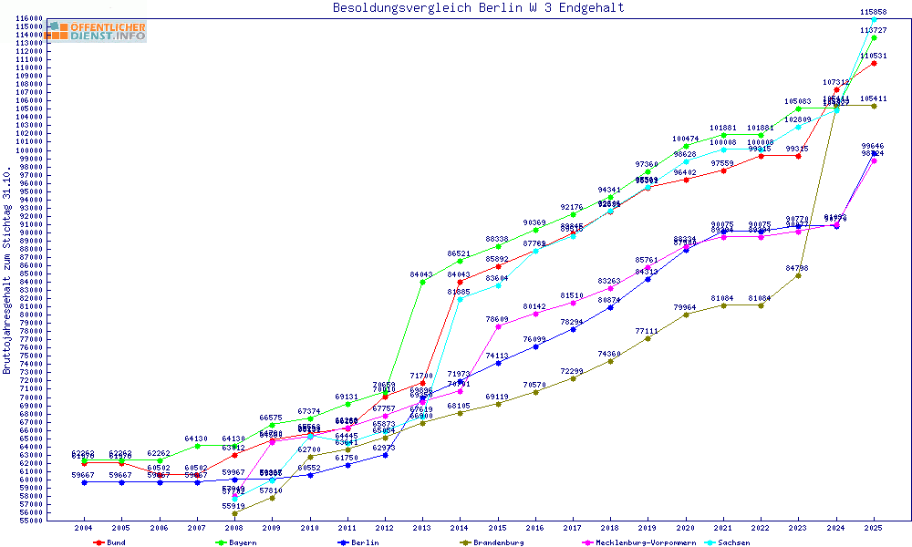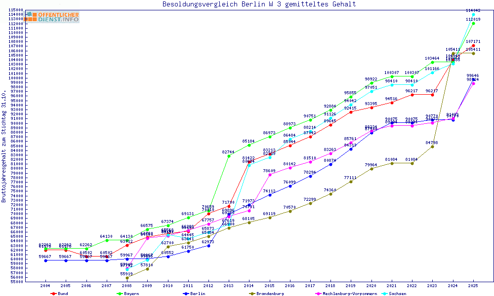 | Besoldungsvergleich W 3 im Jahr 2025 | gemitteltes Gehalt | ||||||