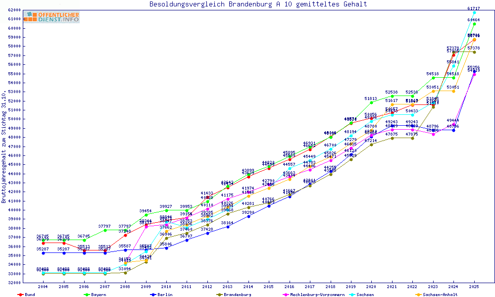 | Besoldungsvergleich A 10 im Jahr 2025 | gemitteltes Gehalt | ||||||