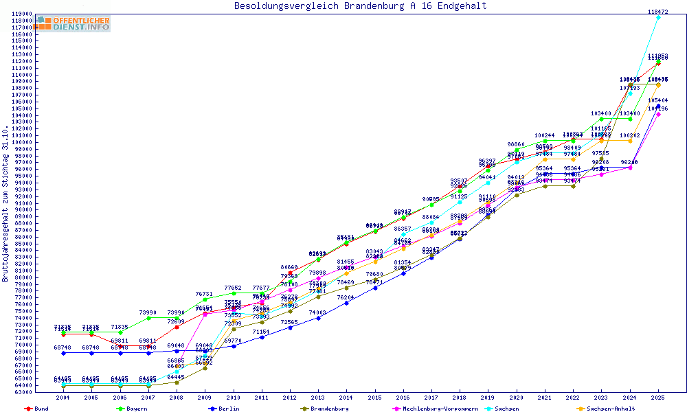 | Brandenburg | 108.485 € | +1077 € | +1.0% | 18 Jahre | ||||