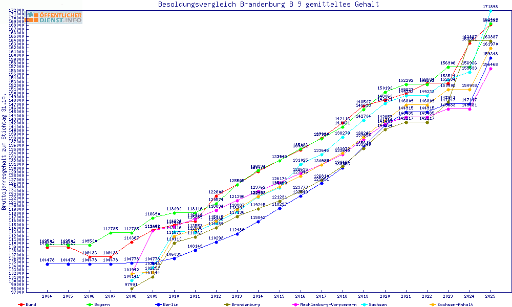 | Besoldungsvergleich B 9 im Jahr 2025 | gemitteltes Gehalt | ||||||