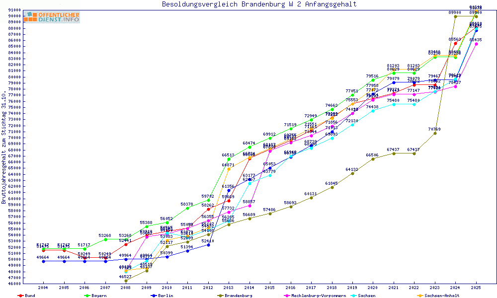 | Sachsen-Anhalt | 90.819 € | +918 € | +1.0% | +2556 € | +2.9% | ||