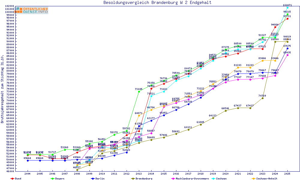 | Sachsen | 101.472 € | +11570 € | +12.9% | +12632 € | +14.2% | 6 Jahre | ||