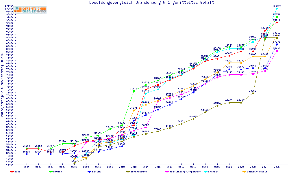 | Besoldungsvergleich W 2 im Jahr 2025 | gemitteltes Gehalt | ||||||