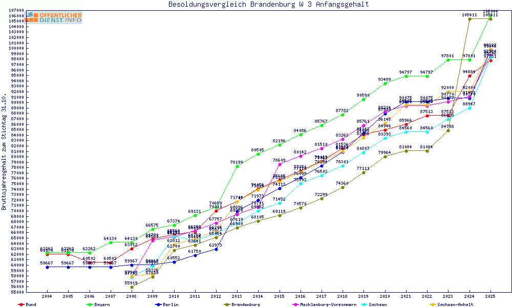 | Besoldungsvergleich W 3 im Jahr 2025 | Anfangsgehalt | ||||||