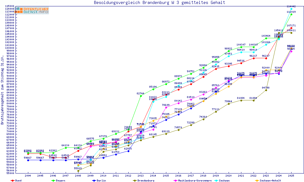 | Besoldungsvergleich W 3 im Jahr 2025 | gemitteltes Gehalt | ||||||
