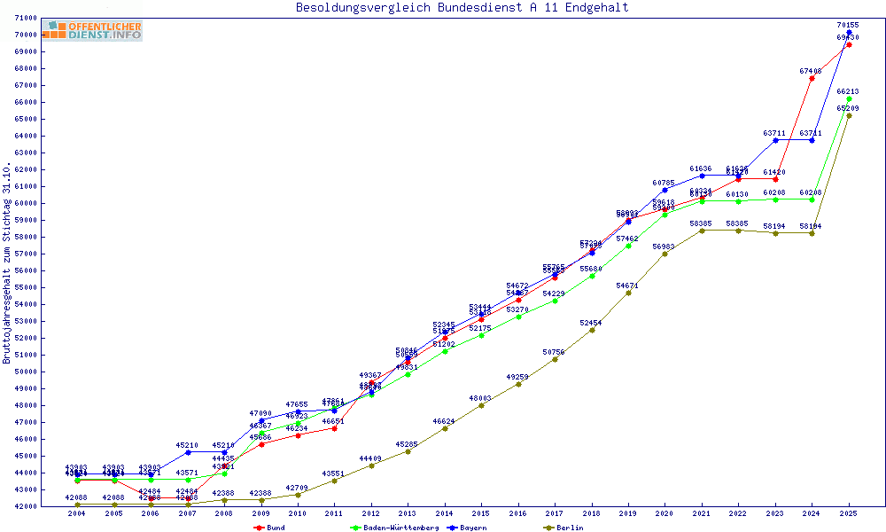 | Besoldungsvergleich A 11 im Jahr 2025 | gemitteltes Gehalt | ||||||