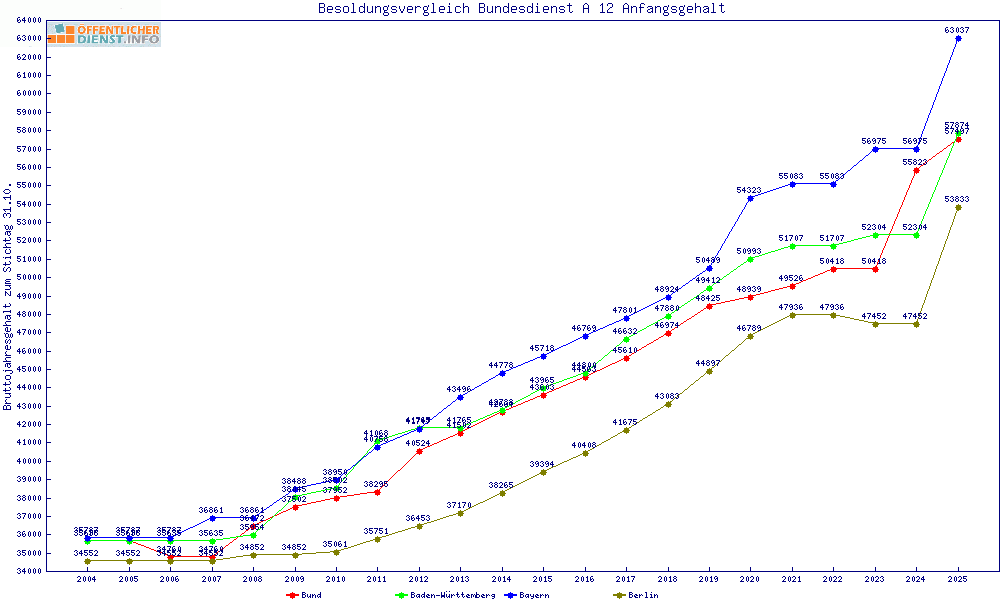 | Besoldungsvergleich A 12 im Jahr 2025 | Anfangsgehalt | ||||||