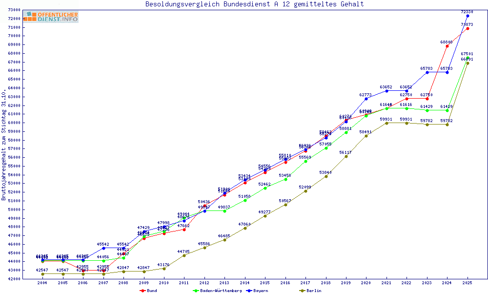 | Besoldungsvergleich A 12 im Jahr 2025 | gemitteltes Gehalt | ||||||