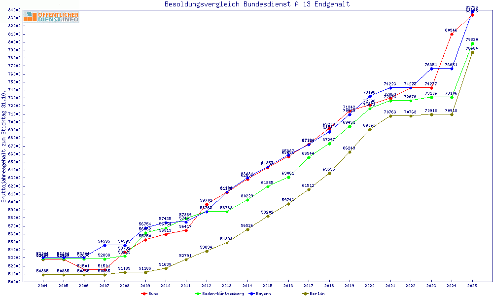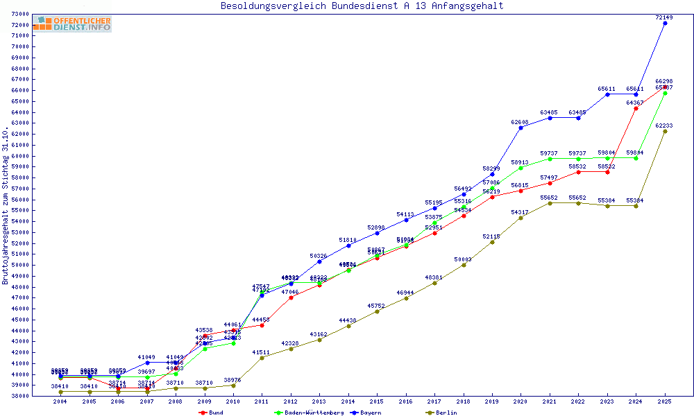 | Besoldungsvergleich A 13 im Jahr 2025 | Anfangsgehalt | ||||||