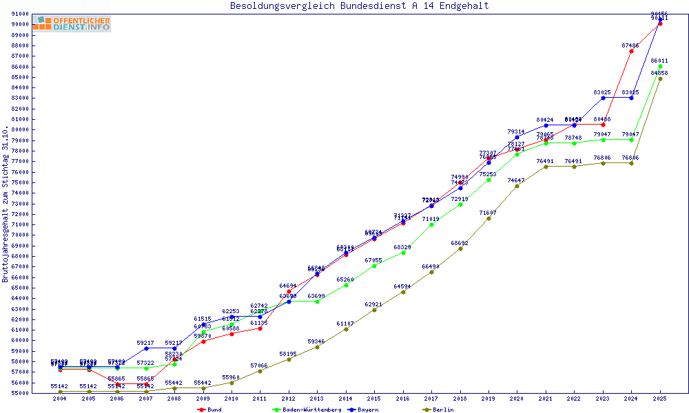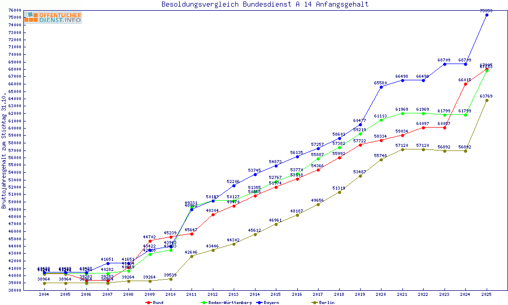 | Besoldungsvergleich A 14 im Jahr 2025 | Anfangsgehalt | ||||||
