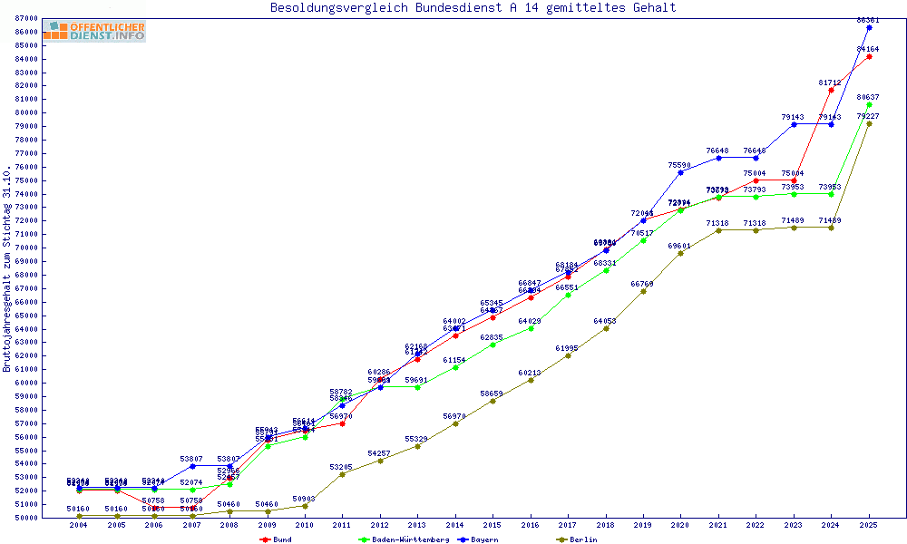 | Besoldungsvergleich A 14 im Jahr 2025 | gemitteltes Gehalt | ||||||