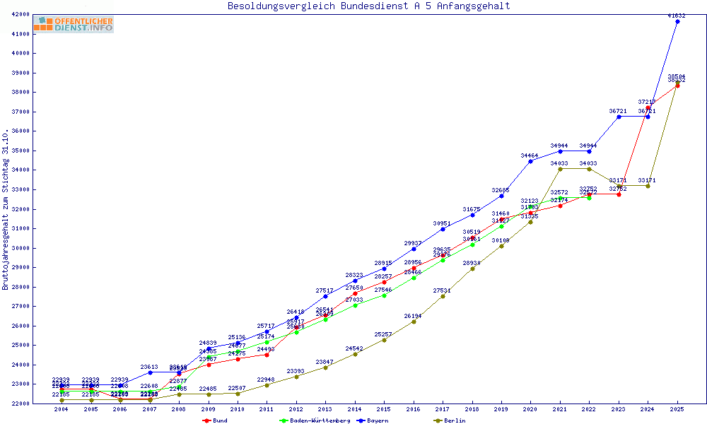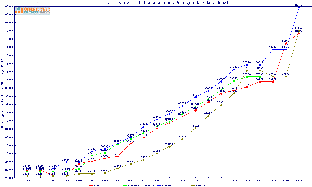 | Besoldungsvergleich A 5 im Jahr 2025 | gemitteltes Gehalt | ||||||