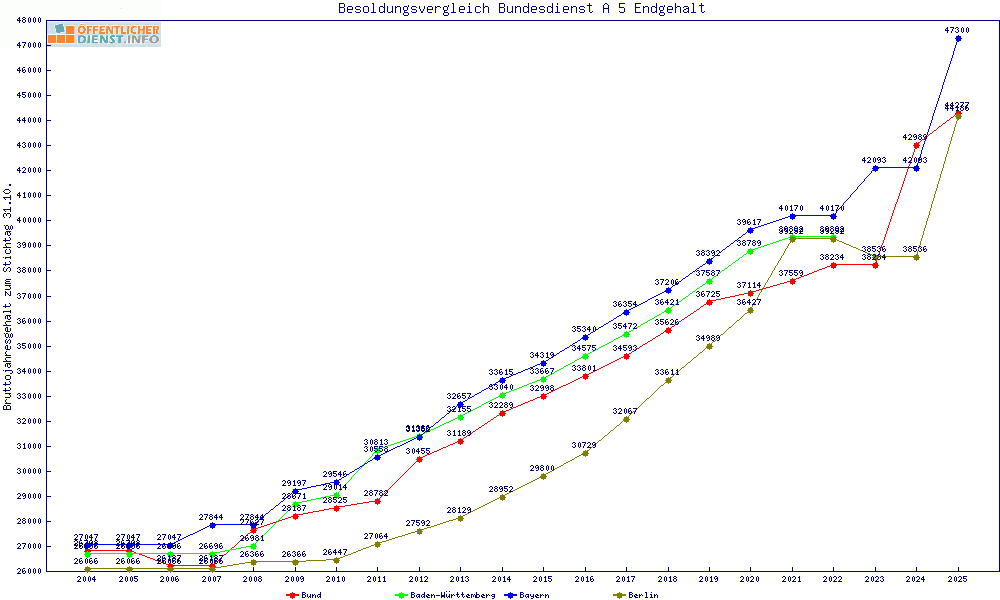 | Besoldungsvergleich A 5 im Jahr 2025 | Endgehalt | |||||||