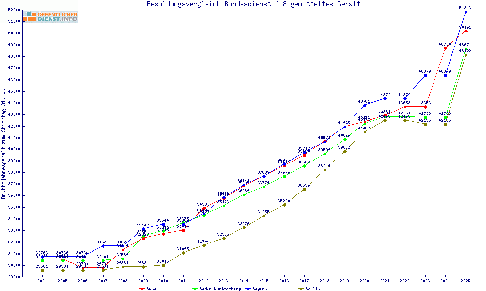 | Besoldungsvergleich A 8 im Jahr 2025 | gemitteltes Gehalt | ||||||