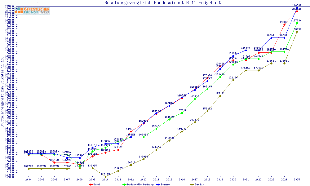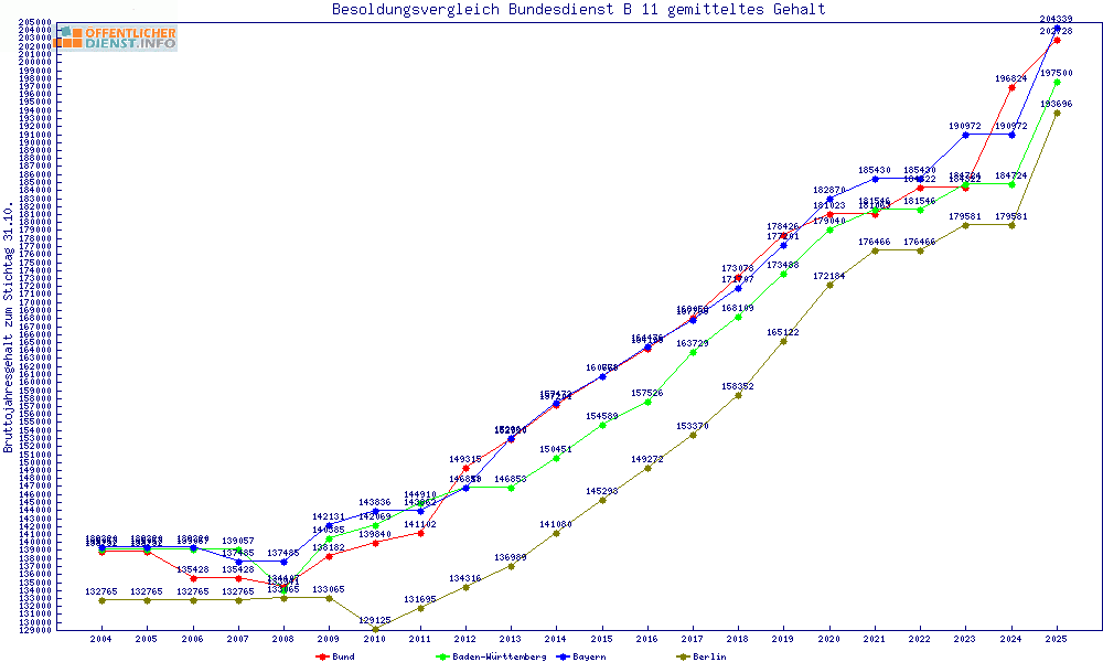 | Besoldungsvergleich B 11 im Jahr 2025 | gemitteltes Gehalt | ||||||