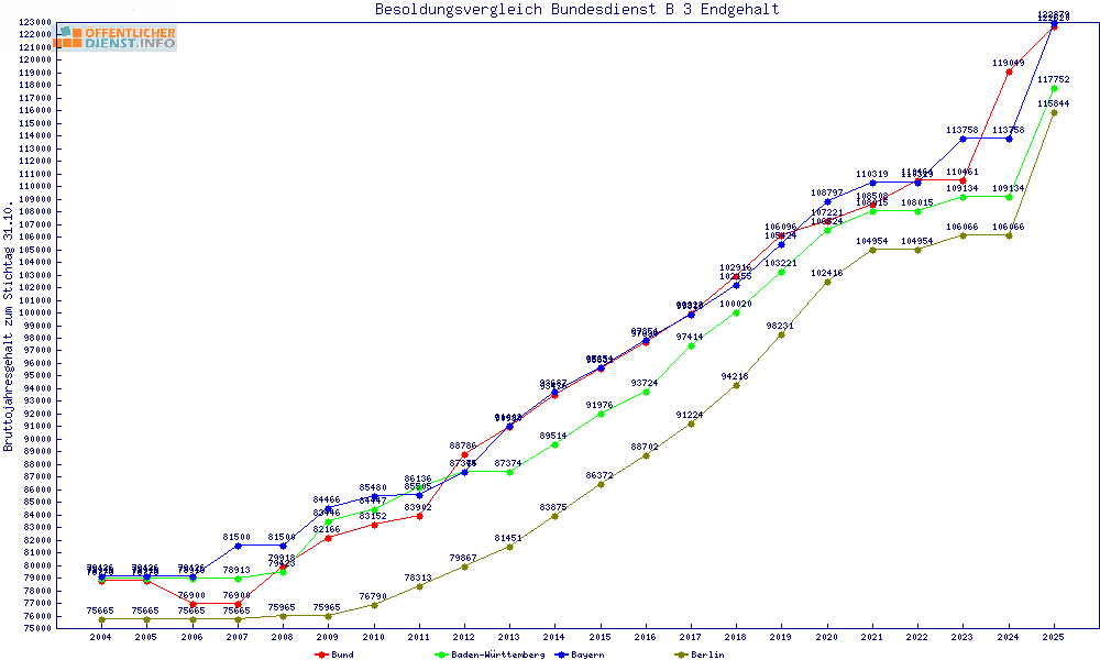 | Besoldungsvergleich B 3 im Jahr 2025 | gemitteltes Gehalt | ||||||