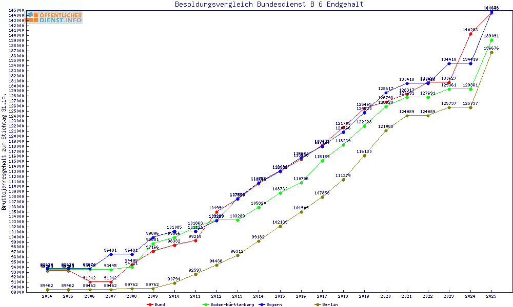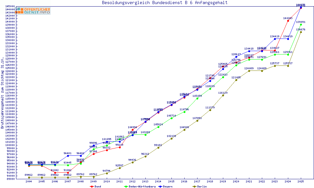 | Besoldungsvergleich B 6 im Jahr 2025 | Anfangsgehalt | ||||||