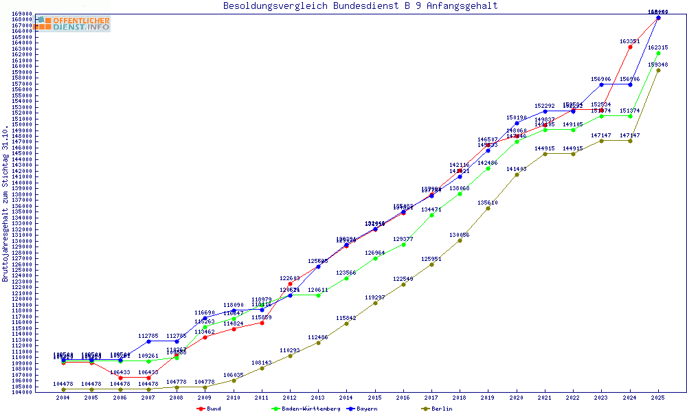 | Besoldungsvergleich B 9 im Jahr 2025 | Anfangsgehalt | ||||||