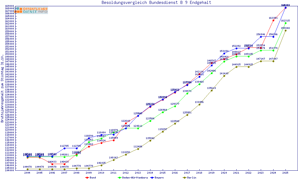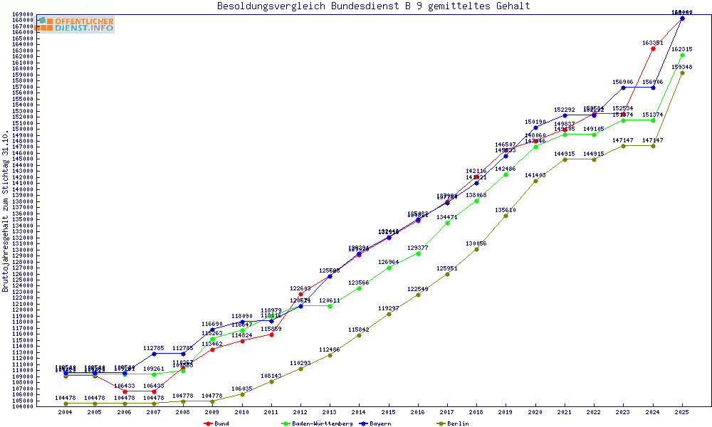 | Besoldungsvergleich B 9 im Jahr 2025 | gemitteltes Gehalt | ||||||