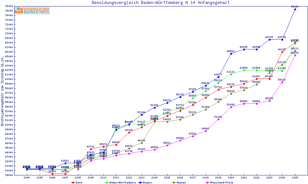 | Besoldungsvergleich A 14 im Jahr 2025 | Anfangsgehalt | ||||||