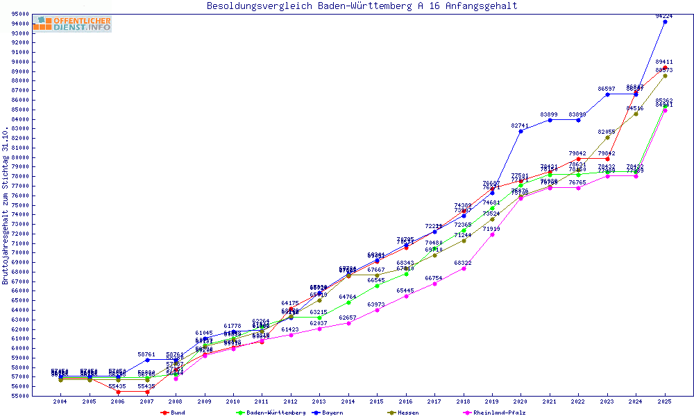 | Besoldungsvergleich A 16 im Jahr 2025 | Anfangsgehalt | ||||||