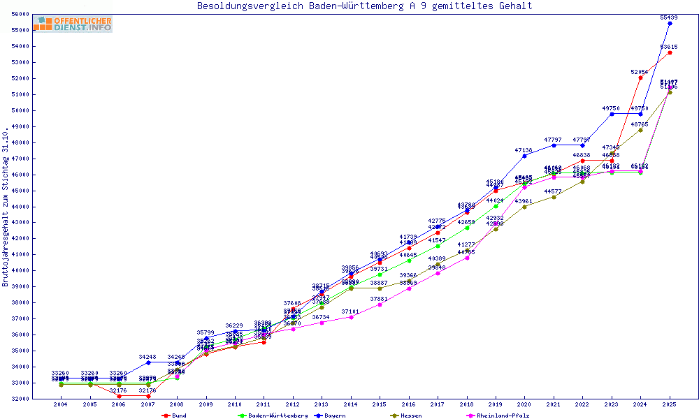 | Besoldungsvergleich A 9 im Jahr 2025 | gemitteltes Gehalt | ||||||