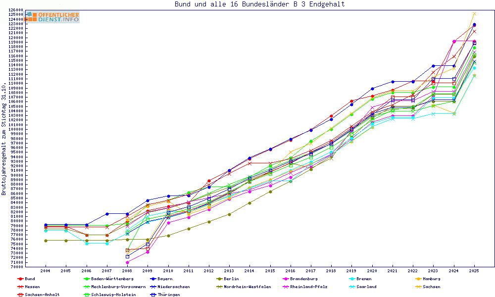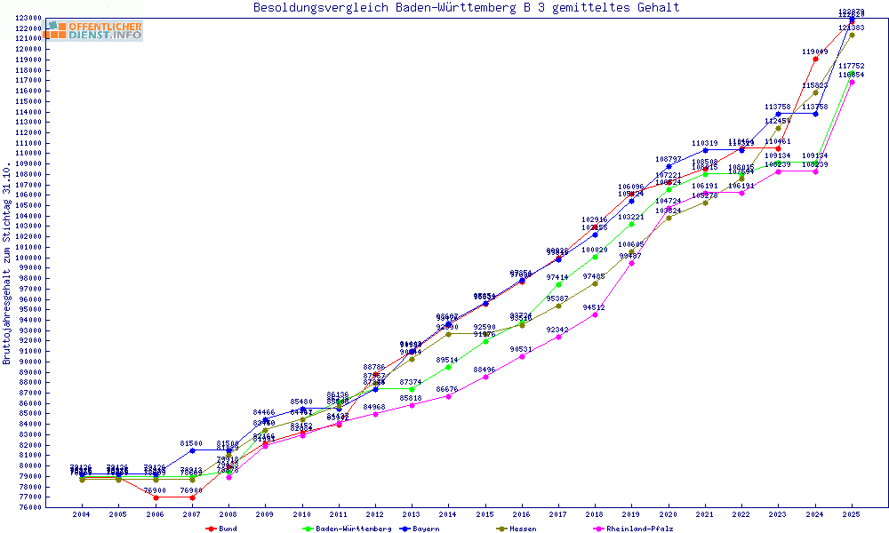 | Besoldungsvergleich B 3 im Jahr 2025 | gemitteltes Gehalt | ||||||