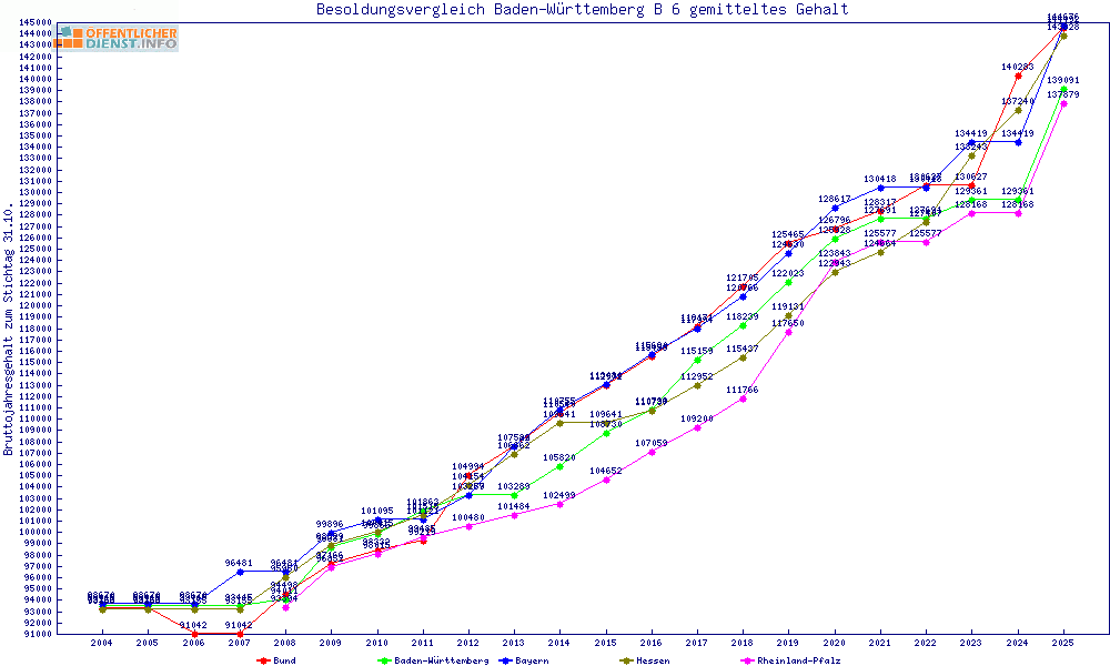 | Besoldungsvergleich B 6 im Jahr 2025 | gemitteltes Gehalt | ||||||