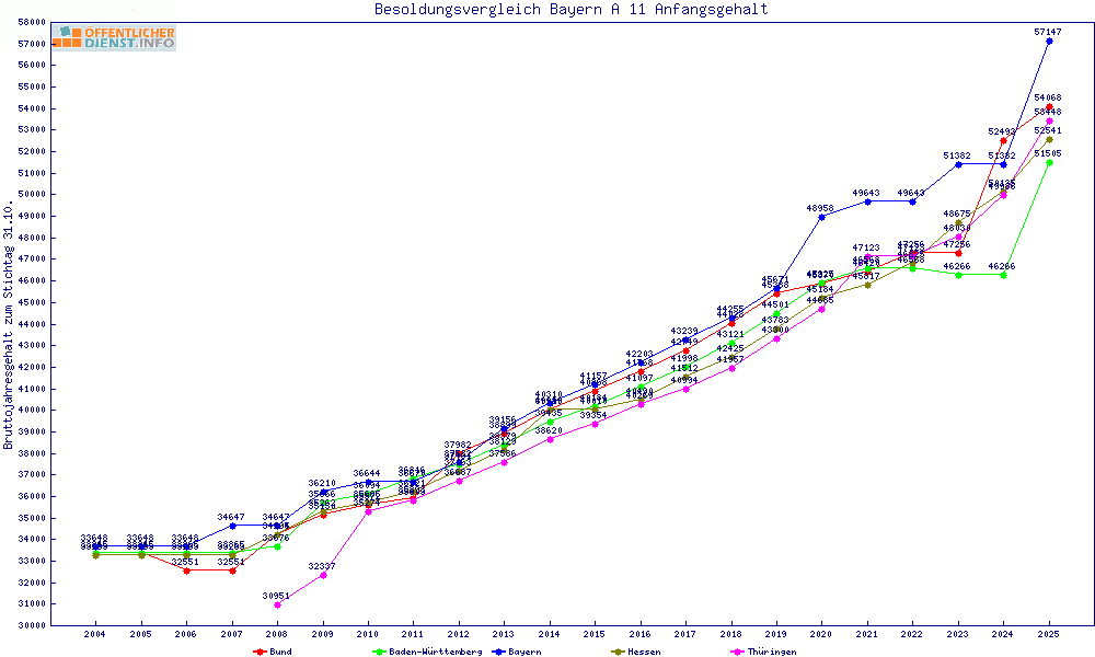 | Besoldungsvergleich A 11 im Jahr 2025 | Anfangsgehalt | ||||||